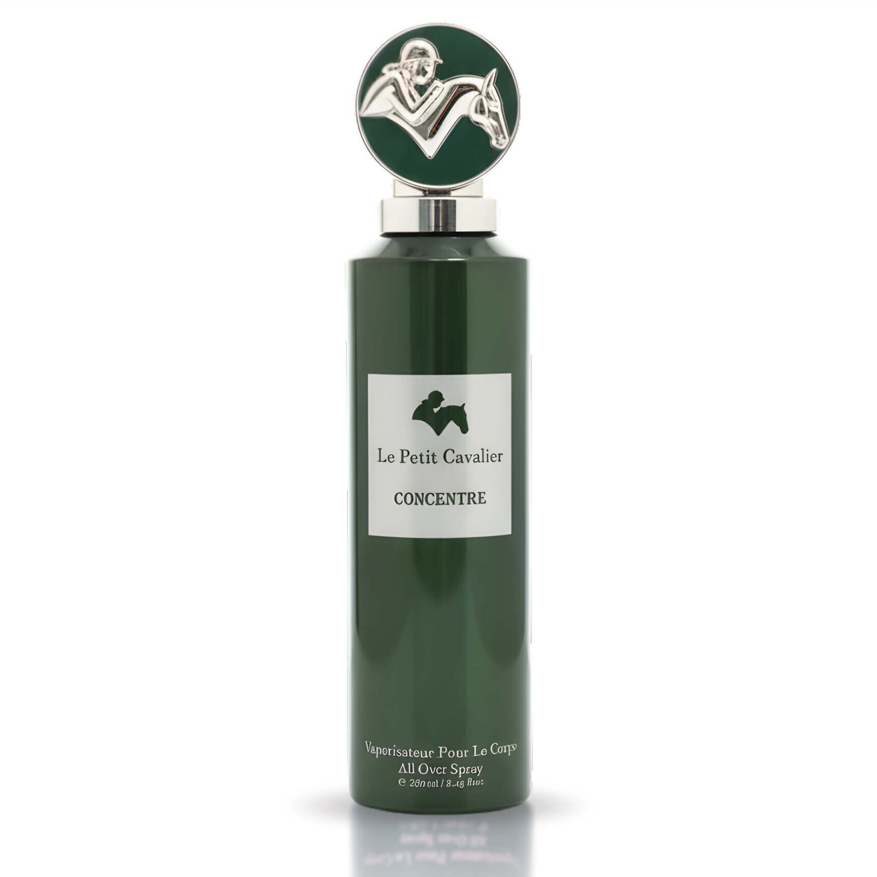 The bottle comes in a deep green color with refined silver accents. Together with its modern shape and the iconic Le Petit Cavalier emblem, it reflects motion, power, and a clean masculine identity.