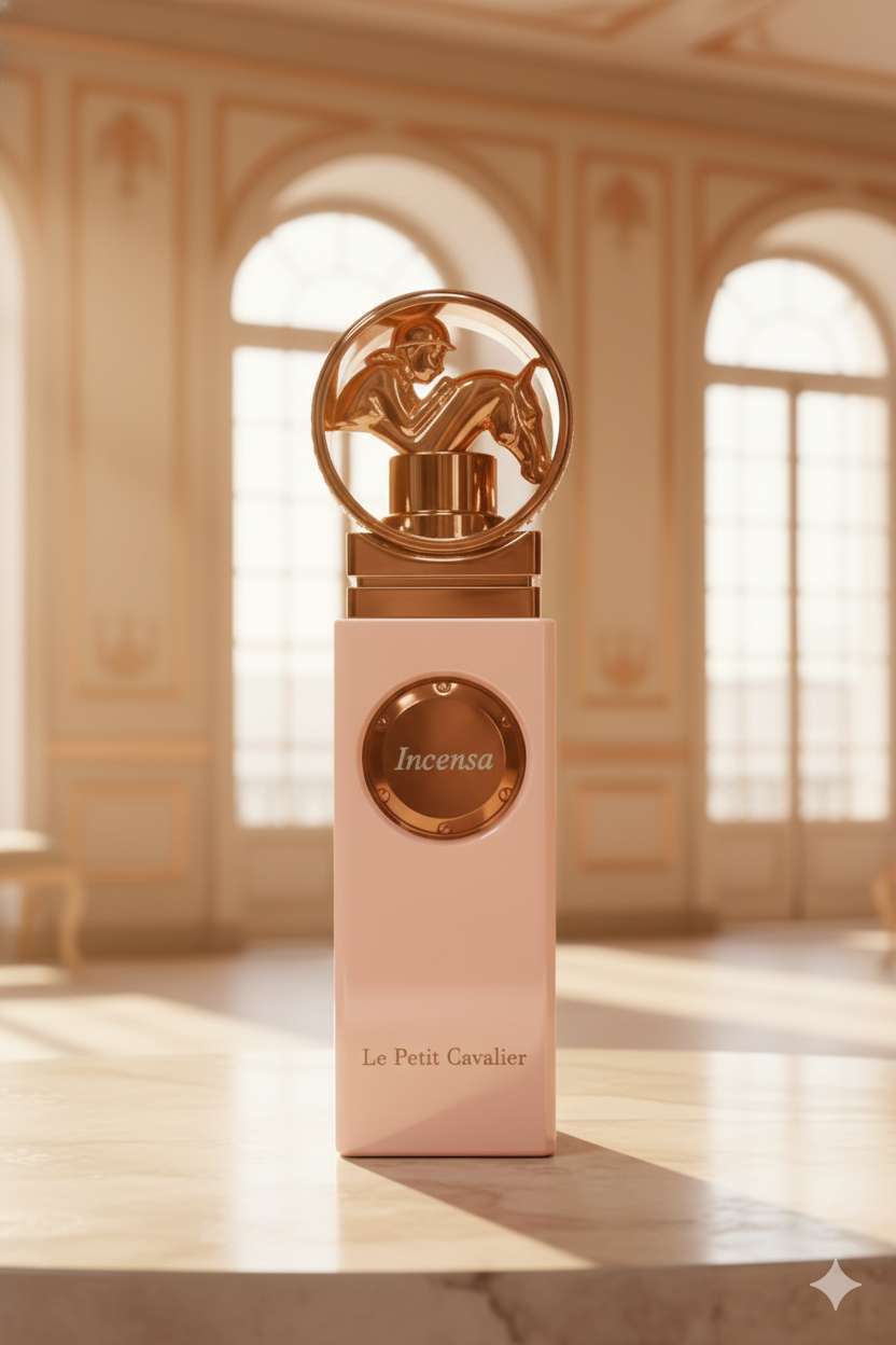 The peach-colored bottle with rose-gold details reflects softness and luxury. Additionally, the sculpted cap highlights Le Petit Cavalier’s artistic identity. The polished finish adds a timeless and feminine touch.